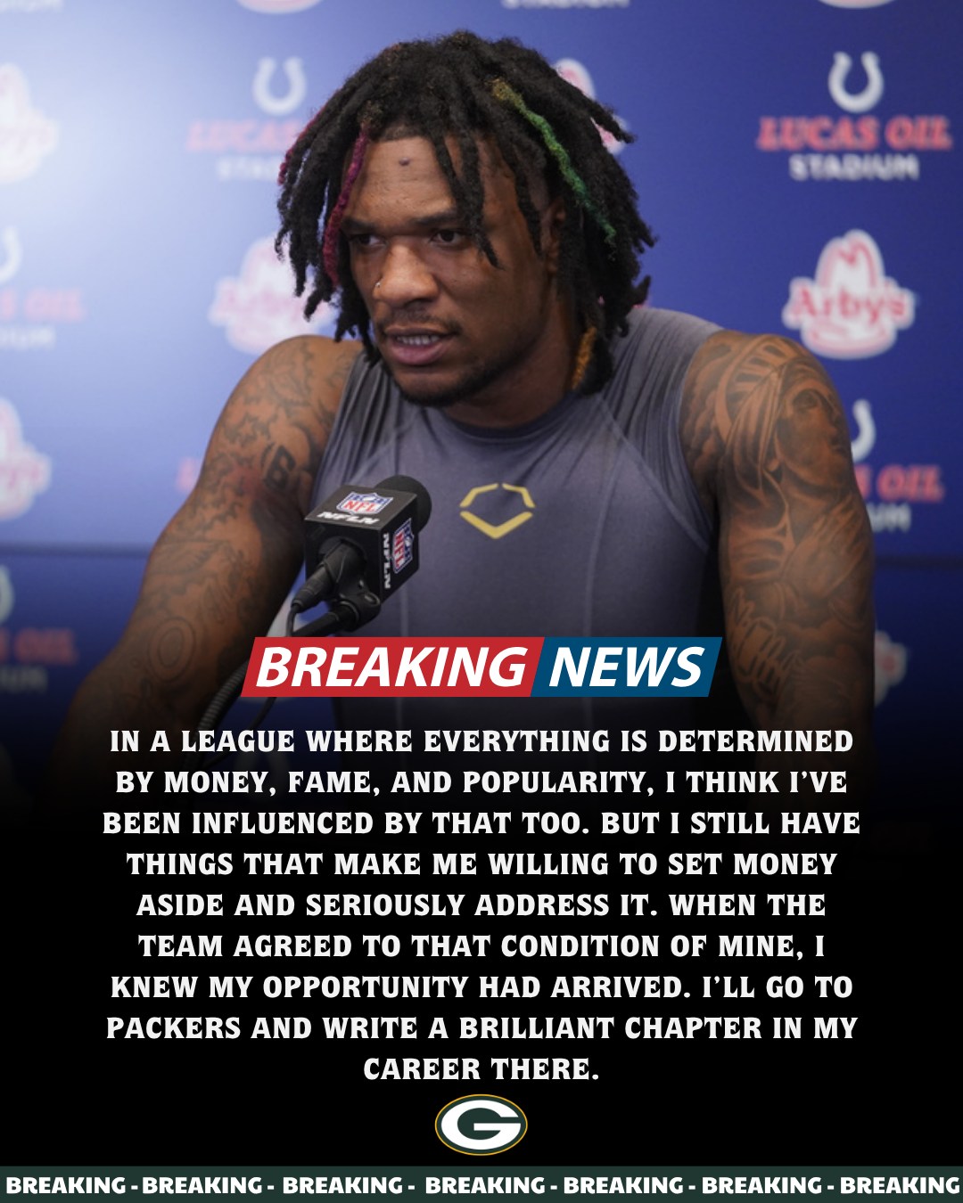 "In a league where everything is determined by money, fame, and popularity, I think I've been influenced by that too. But I still have things that make me willing to set money aside and seriously address it. When the team agreed to that condition of mine, I knew my opportunity had arrived. I'll go to Packers and write a brilliant chapter in my career there."